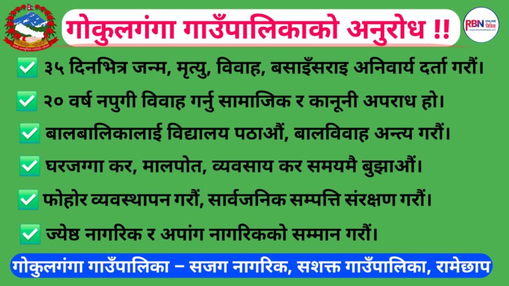 रामेछाप — संघीय मामिला तथा सामान्य प्रशासन मन्त्रालयले शुक्रबार सार्वजनिक गरेको आर्थिक वर्ष २०८०/०८१ को स्थानीय तह संस्थागत क्षमता स्वमूल्यांकन (लिजा) मा रामेछापको गोकुलगंगा गाउँपालिका शीर्ष स्थानमा उक्लिएको छ।