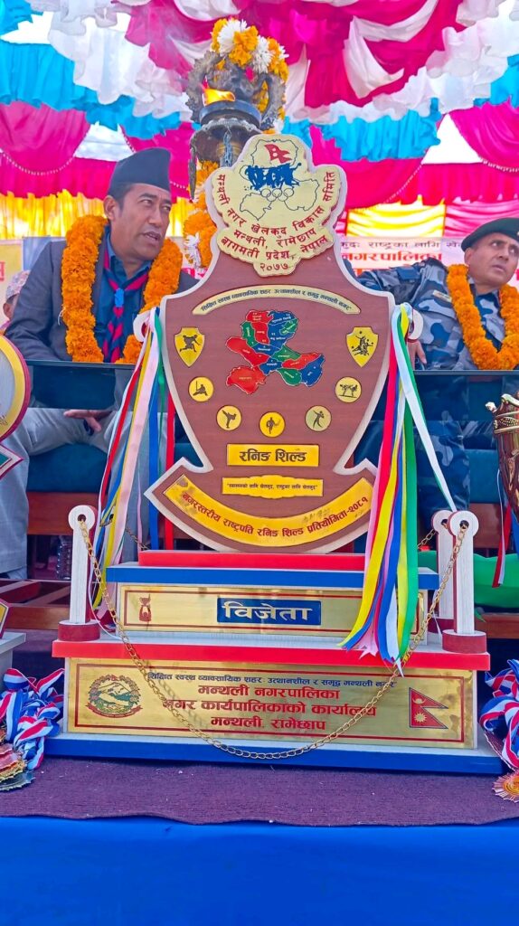 रामेछापको सदरमुकाम मन्थलीमा आयोजना हुने प्रतिष्ठित ८ौँ मन्थली नगरस्तरीय राष्ट्रपति रनिङ शिल्ड प्रतियोगिता बुधवारदेखि सुरु भएको छ। मन्थली नगर खेलकुद विकास समितिको आयोजनामा मन्थली माध्यमिक विद्यालयको खेलमैदानमा सम्पन्न उद्घाटन कार्यक्रमको शुभारम्भ नगर प्रमुख लव श्रेष्ठले गर्नुभयो।